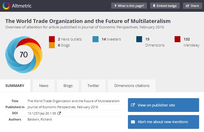 Altmetrics are a good way to know what others think about your research and to document the attention it gathered on the web. In comparison with traditional bibliometrics: