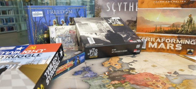 We have of course tried to cover subjects of interest to the Institute: international conflicts, elections, slavery, energy, and the environment – and then, some titles which students just really wanted. Hopefully, everyone can find something for their taste. A full list of our collection is available at the loan desk and on our BoardGameGeek profile.